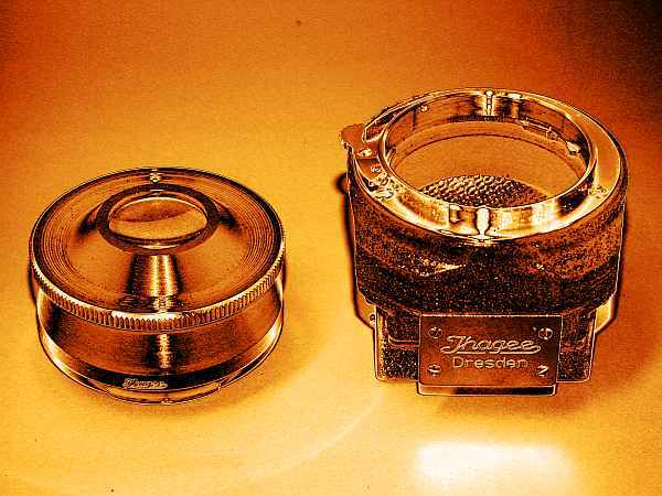 Mindestens drei Versionen der passenden Ihagee-Objektivlupen sind derzeit bekannt: