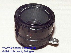 ein Bonotar-Wechselobjektiv für Spiegelreflexkameras vorgestellt. Die verfügbaren Anschlüsse dieser Optik waren M42, Exakta und in geringen Stückzahlen auch Praktina. Die Produktion dieses Bonotar lief bis 1959, im